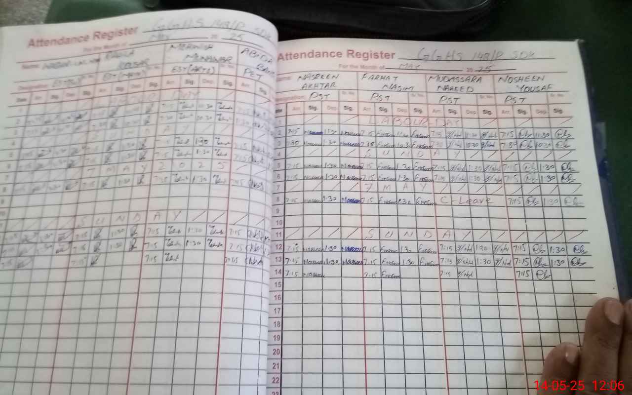 | CNIC | Full Name | Designation | R/C | Absence During Last Calender Month |
