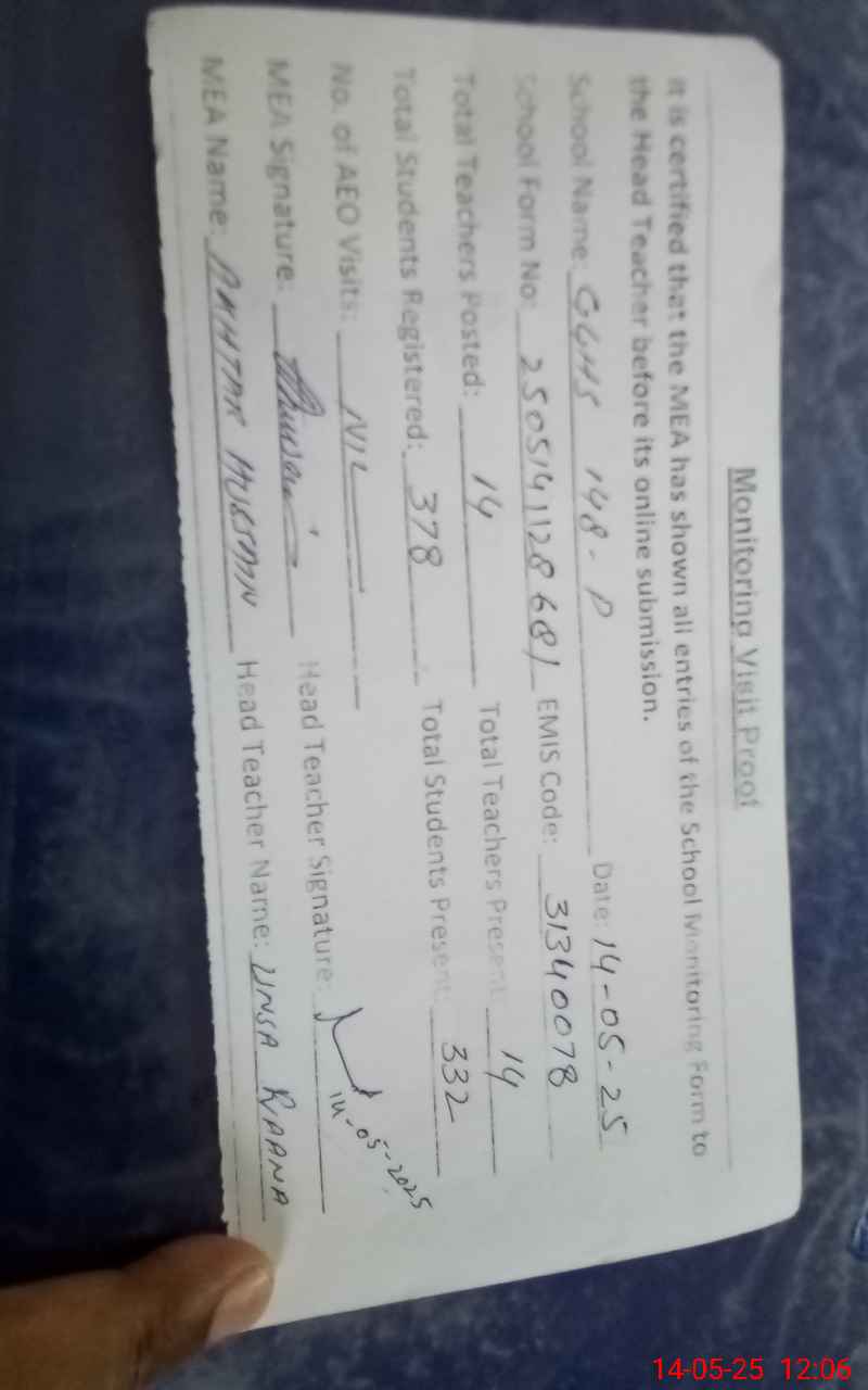 | EMIS Code: 31340078 | Name of School: GGHS 148/P | |||