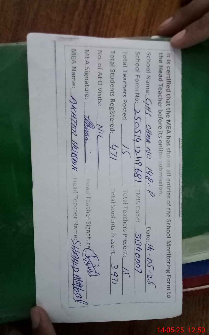 | EMIS Code: 31340007 | Name of School: GHS CHAK NO. 148/P | |||