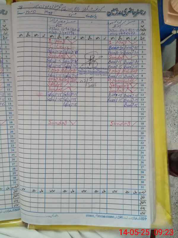 | Name: BA**** ME**** Designation: (School Headmaster's/Headmistress's) EST Phone/Cell Number: 03**** |