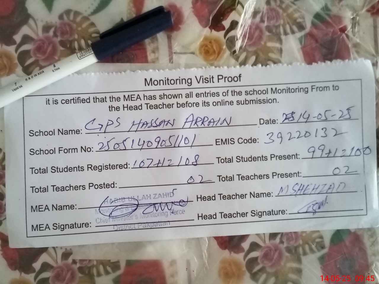 | EMIS Code: 39220132 | Name of School: GPS CHAK HASSAN ARRAIN | |||