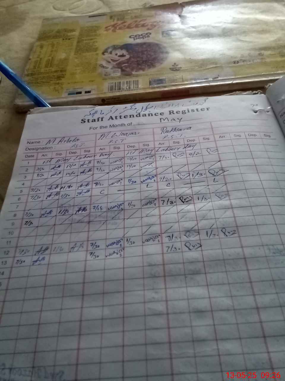 | CNIC | Full Name | Designation | R/C | Absence During Last Calender Month |