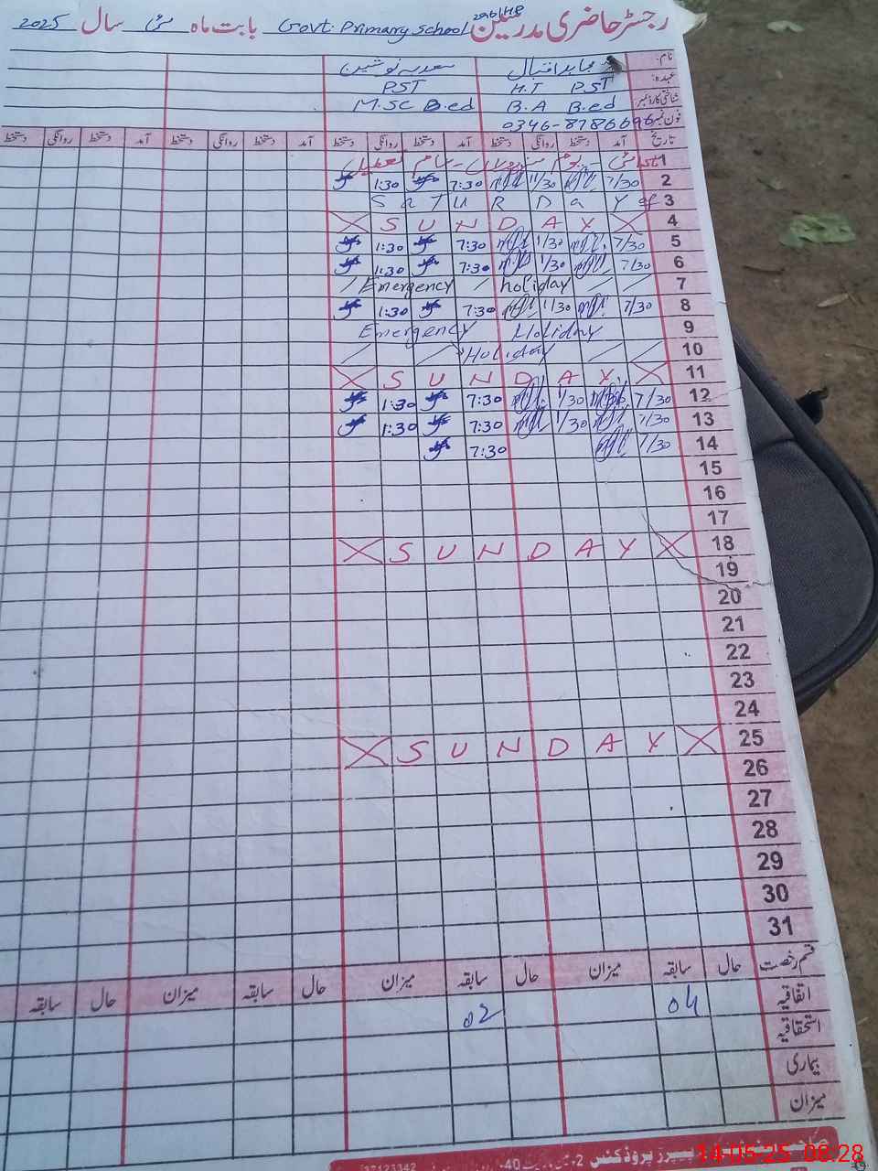 | Name: MU**** IQ**** Designation: (School Headmaster's/Headmistress's) PTC/JV Phone/Cell Number: 03**** |