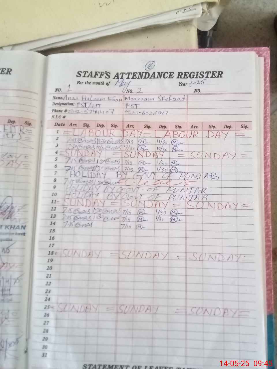 | Name: AN**** HA**** KH**** Designation: (School Headmaster's/Headmistress's) PST Phone/Cell Number: 03**** |