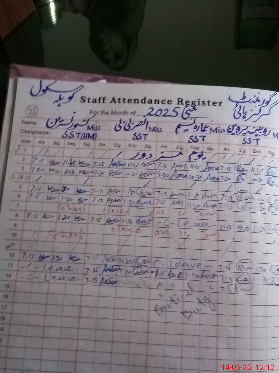 | 32**** | Am**** Na**** | 6 | 2 | 0 | 0 | 0 | 0 | 0 | 0 | 0 | 0 | 0 | Exam Duty |