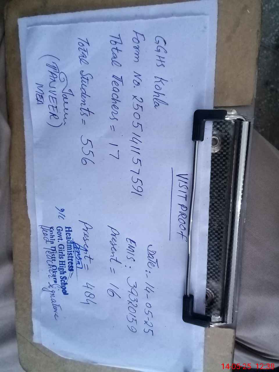 | EMIS Code: 39320159 | Name of School: GGHS KOHLA | |||