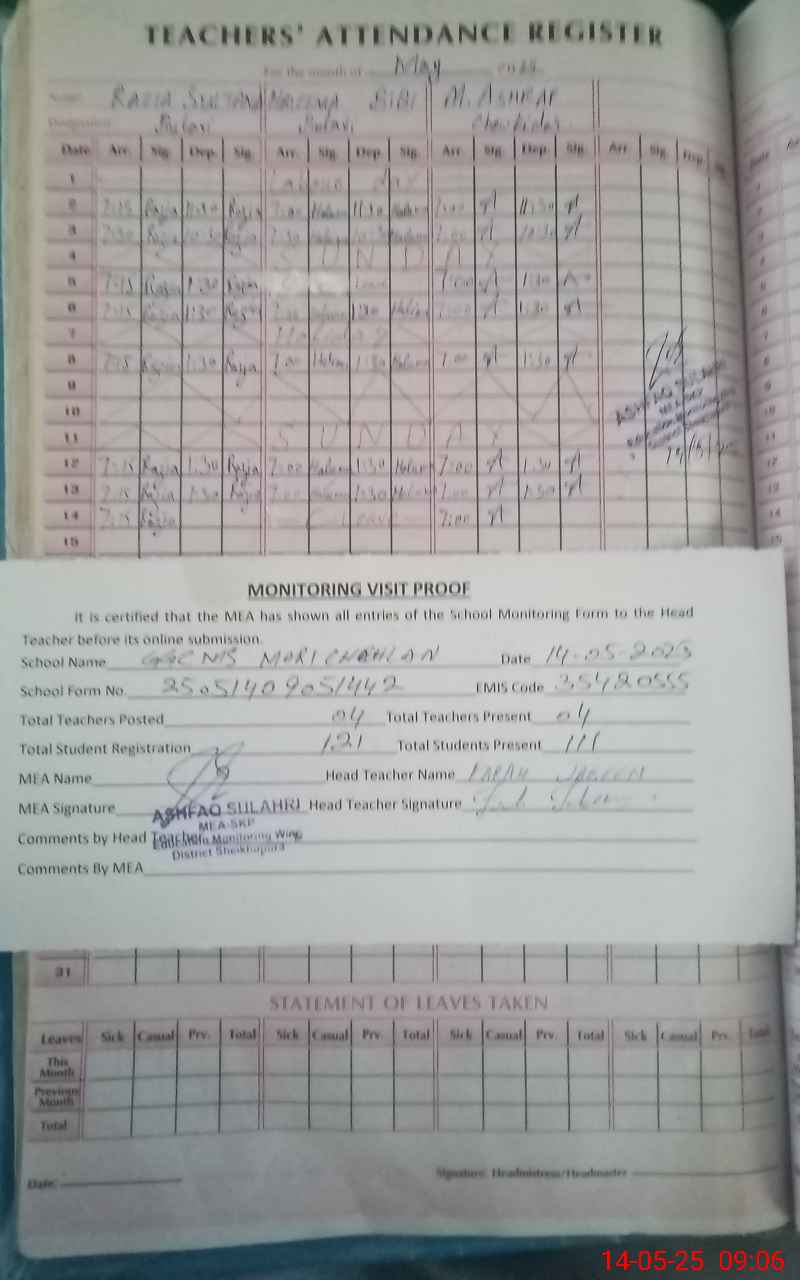 | Attendance Register | Head Teacher | MEA with School | Visit Proof |
