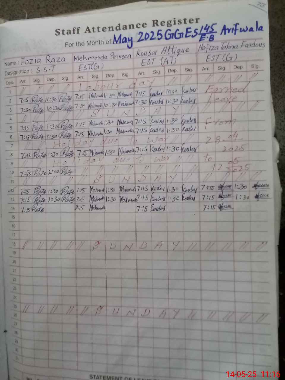 | Name: FO**** RA**** Designation: (School Headmaster's/Headmistress's) S.S.T.(GENERAL) Phone/Cell Number: 03**** |