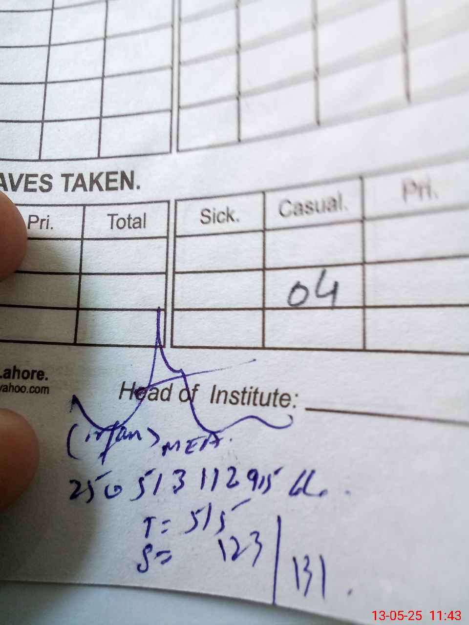 | Name: St**** As**** Designation: (School Headmaster's/Headmistress's) P S T Phone/Cell Number: 03**** |