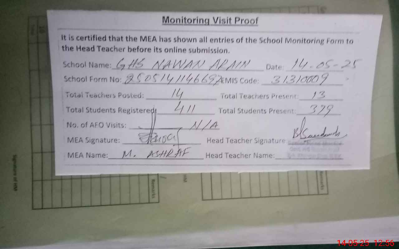 | EMIS Code: 31310009 | Name of School: GHS NAWAIN ARIAN | |||