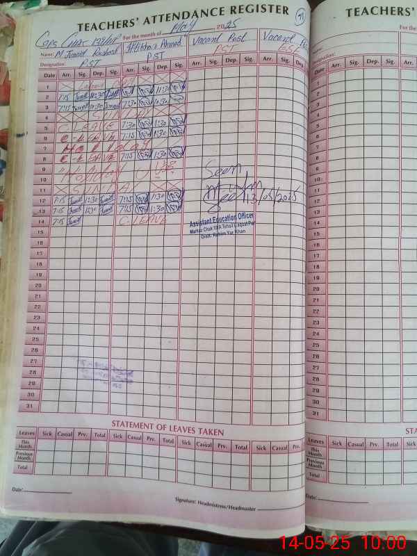 | Name: MU**** JU**** RA**** Designation: (School Headmaster's/Headmistress's) PST Phone/Cell Number: 03**** |