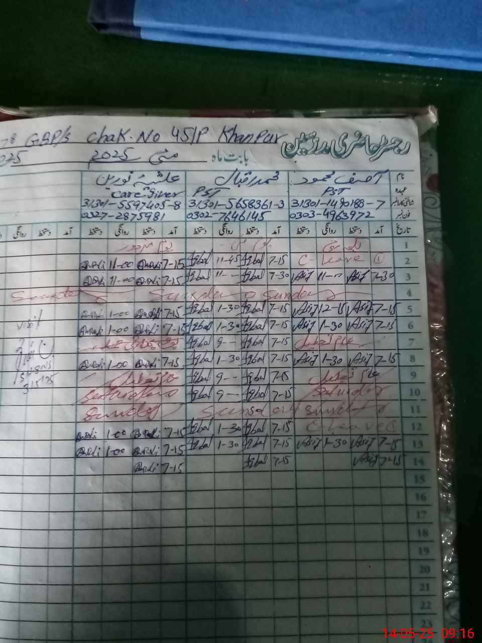 | CNIC | Full Name | Designation | R/C | Absence During Last Calender Month |
