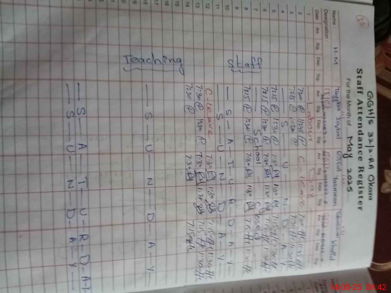 | 35**** | As**** Yo**** | SST | Regular | 0 | 0 | 0 | 0 | 0 | 0 | 0 | 0 | 0 | Exam Duty |
