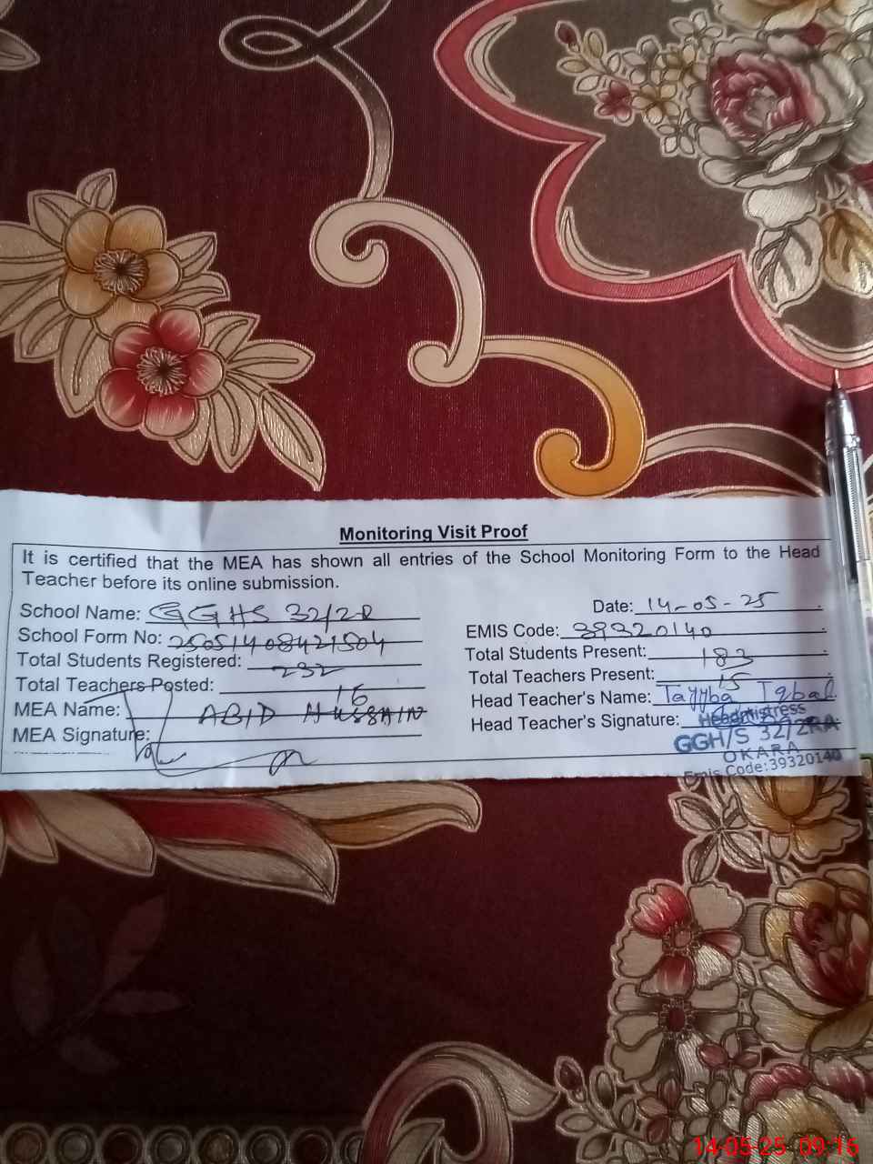 | EMIS Code: 39320140 | Name of School: GGHS 32/2-R OKARA | |||