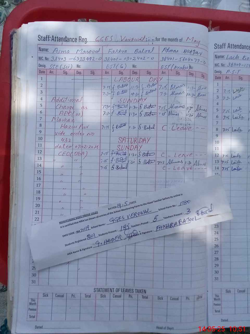 | Attendance Register | Head Teacher | MEA with School | Visit Proof |