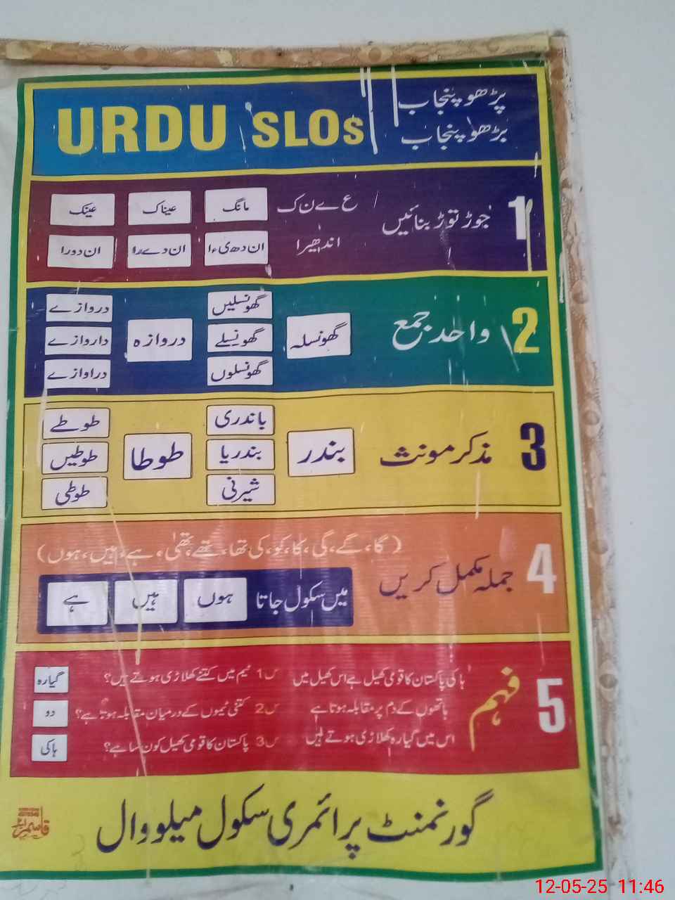 | District: SARGODHA | Tehsil: BHERA | Markaz: HAZOOR PUR - MALE | Level: Primary | |