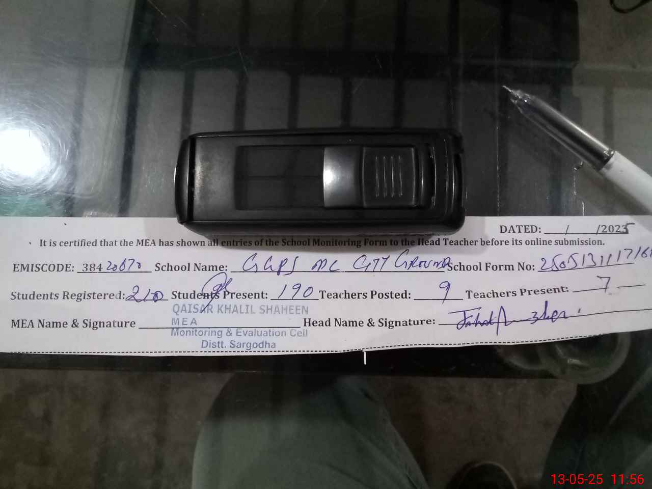 | EMIS Code: 38420670 | Name of School: GGPS MC CITY GROUND SARGODHA | |||
