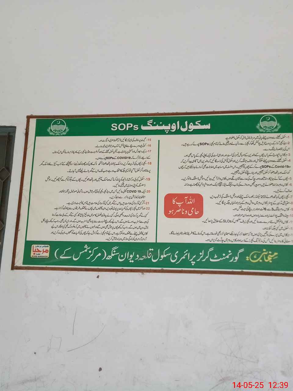 | EMIS Code: 39310541 | Name of School: GGPS QILA DEEWAN SINGH | |||