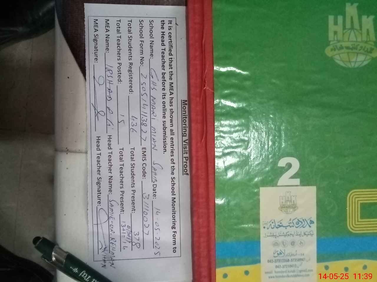 | EMIS Code: 31110027 | Name of School: GHS MARI MAIN SAHIB | |||