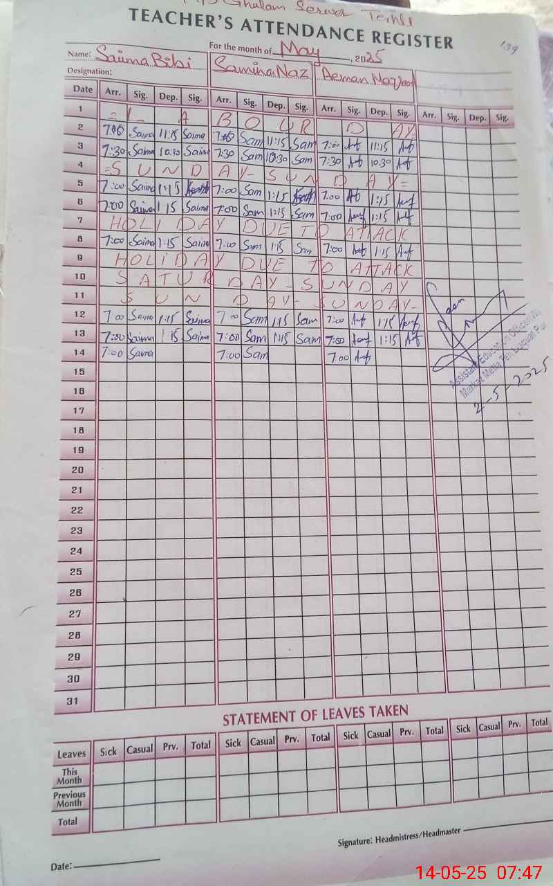| EMIS Code: 31320998 | Name of School: GGPS GHULAM SARWAR TARHALI | |||