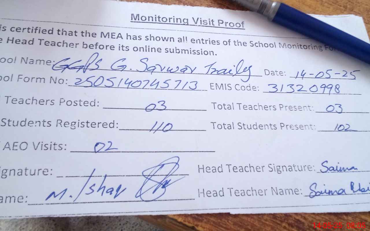 | Attendance Register | Head Teacher | MEA with School | Visit Proof |