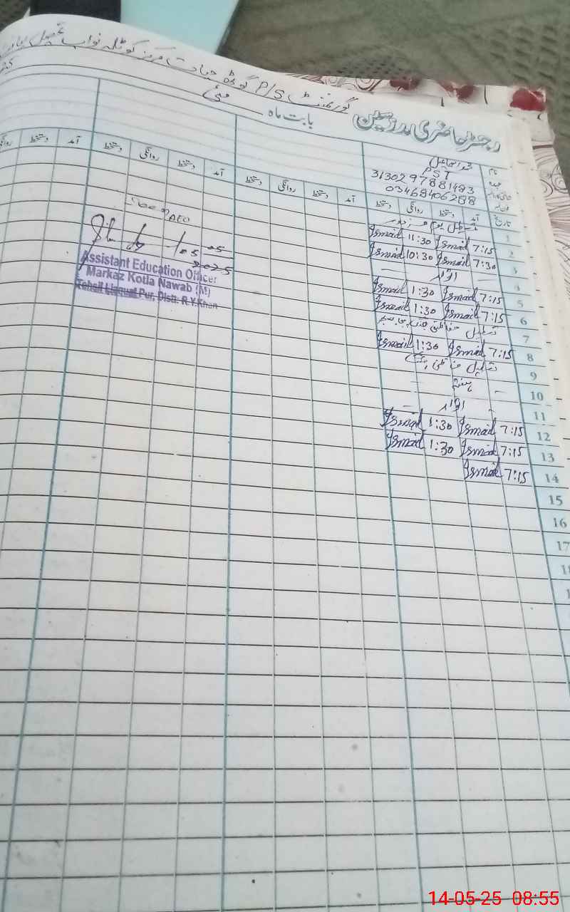 | Name: NI**** AH**** Designation: (School Headmaster's/Headmistress's) PST/PTC/JV Phone/Cell Number: 03**** |