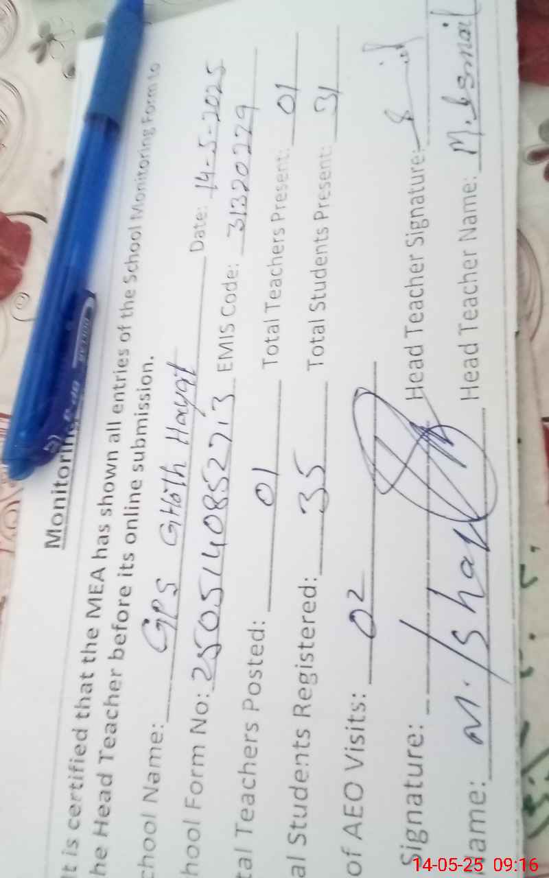 | EMIS Code: 31320229 | Name of School: GPS GOTH HAYAT | |||