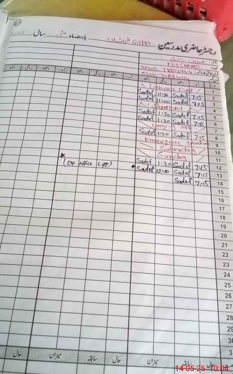 | Name: SA**** RA**** Designation: (School Headmaster's/Headmistress's) PST Phone/Cell Number: 03**** |