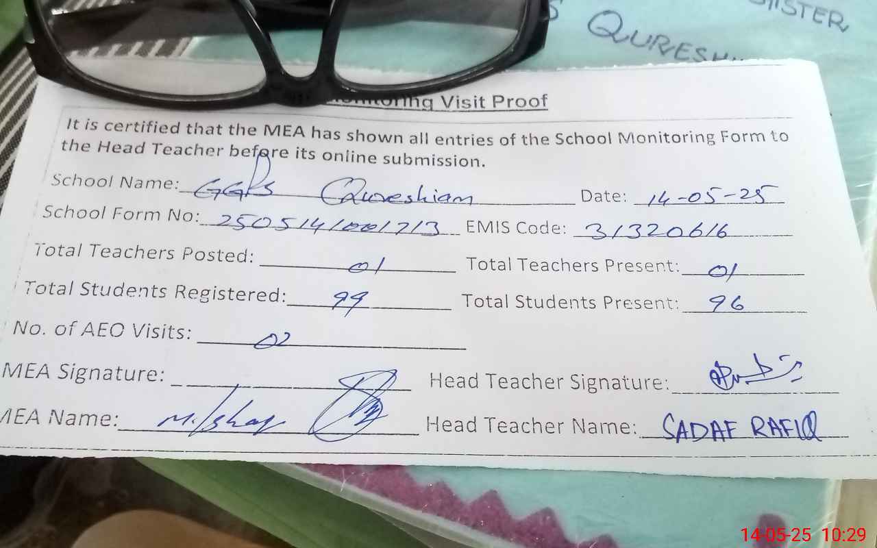 | Attendance Register | Head Teacher | MEA with School | Visit Proof |