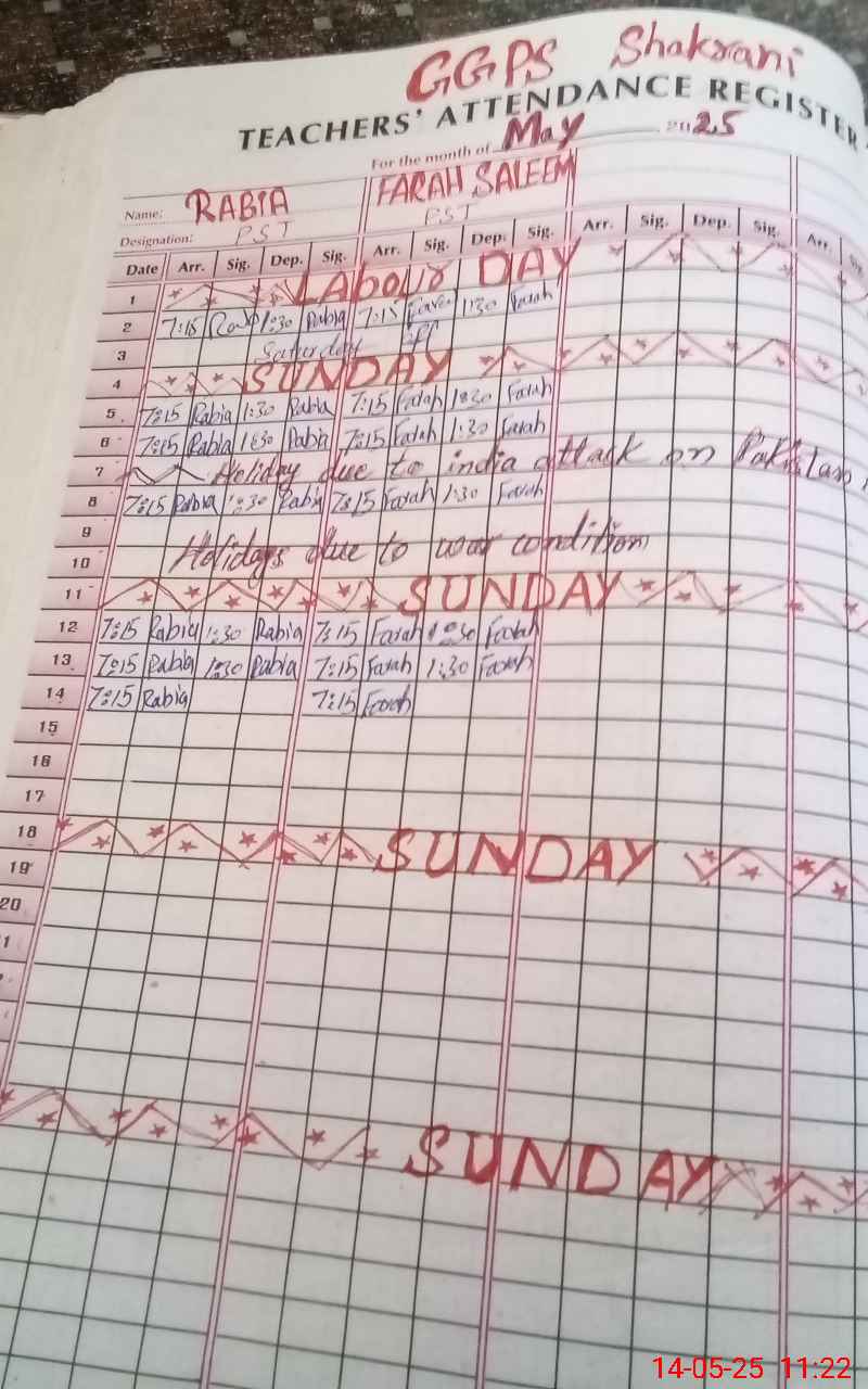 | CNIC | Full Name | Designation | R/C | Absence During Last Calender Month |