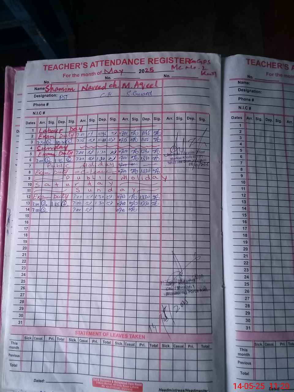 | Name: AQ**** YA**** Designation: (School Headmaster's/Headmistress's) PST Phone/Cell Number: 03**** |