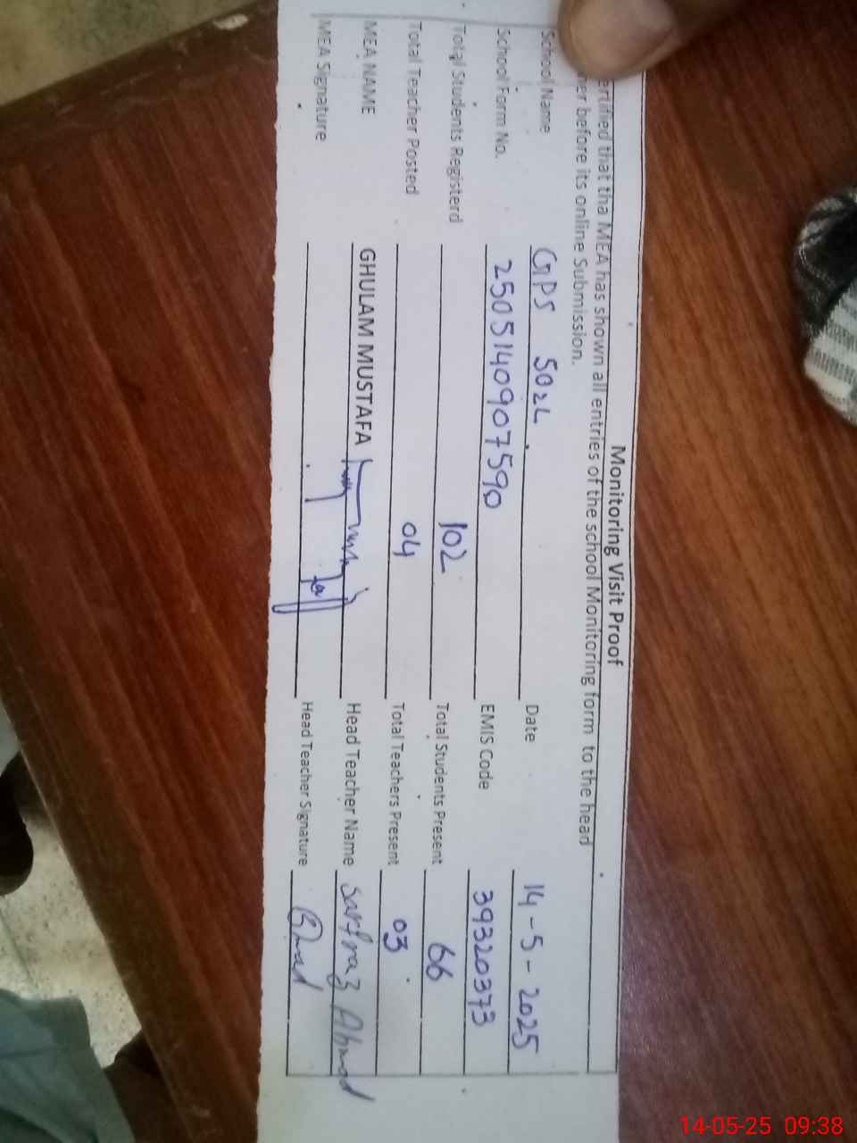 | Monitoring Date: 14-05-2025 | Start Time: 14-05-2025 09:07 AM | End Time: 14-05-2025 09:43 AM | Name of MEA: GH**** MU**** | |