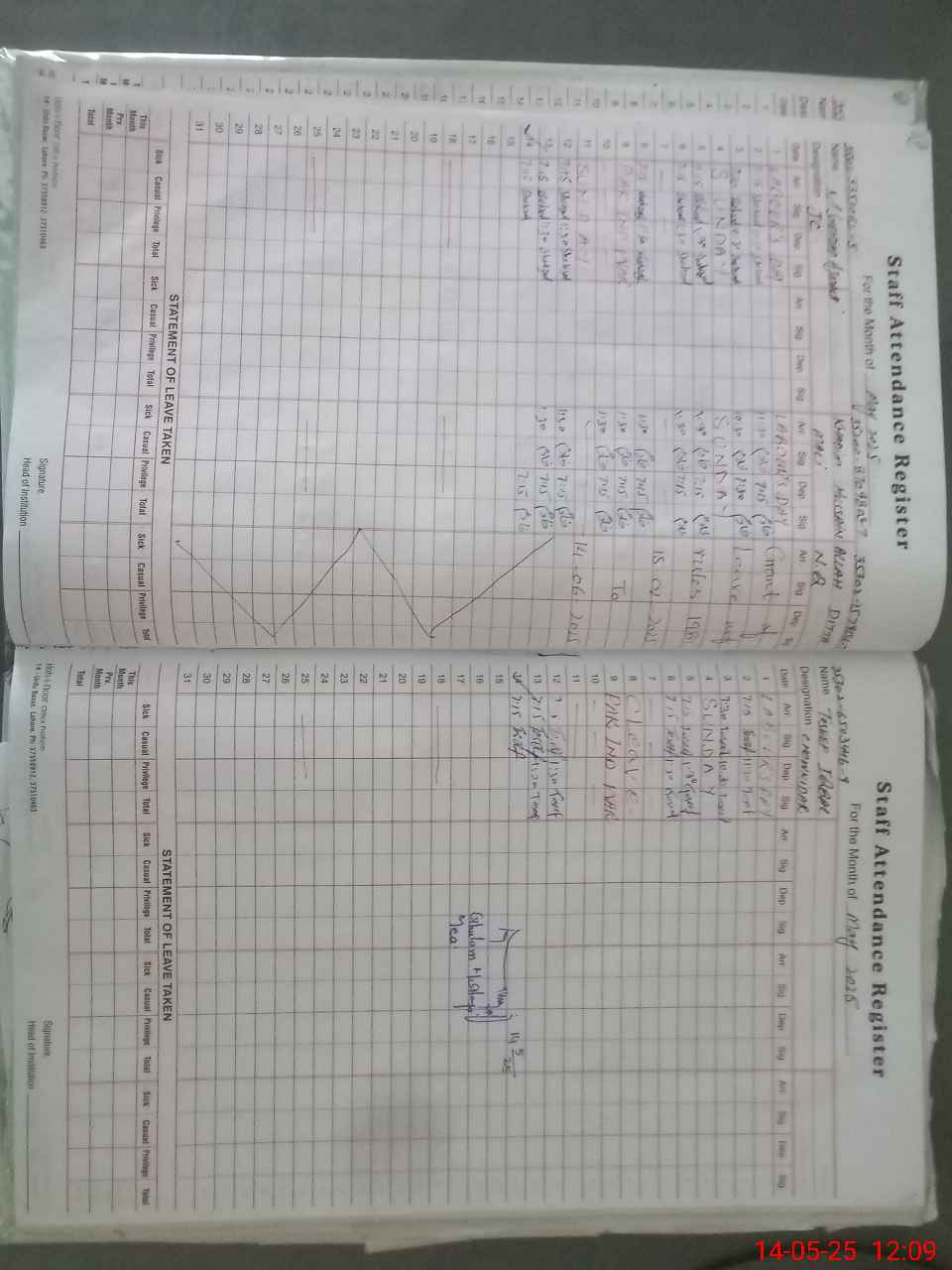 | CNIC | Full Name | Designation | R/C | Absence During Last Calender Month |