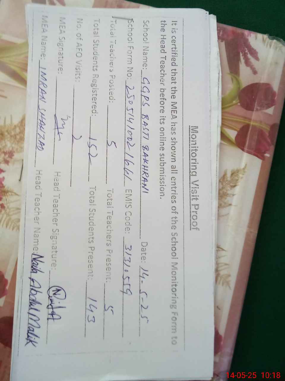 | EMIS Code: 31310559 | Name of School: GGPS BASTI BAKHRANI | |||