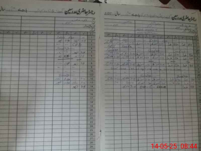| CNIC | Full Name | Designation | R/C | Absence During Last Calender Month |