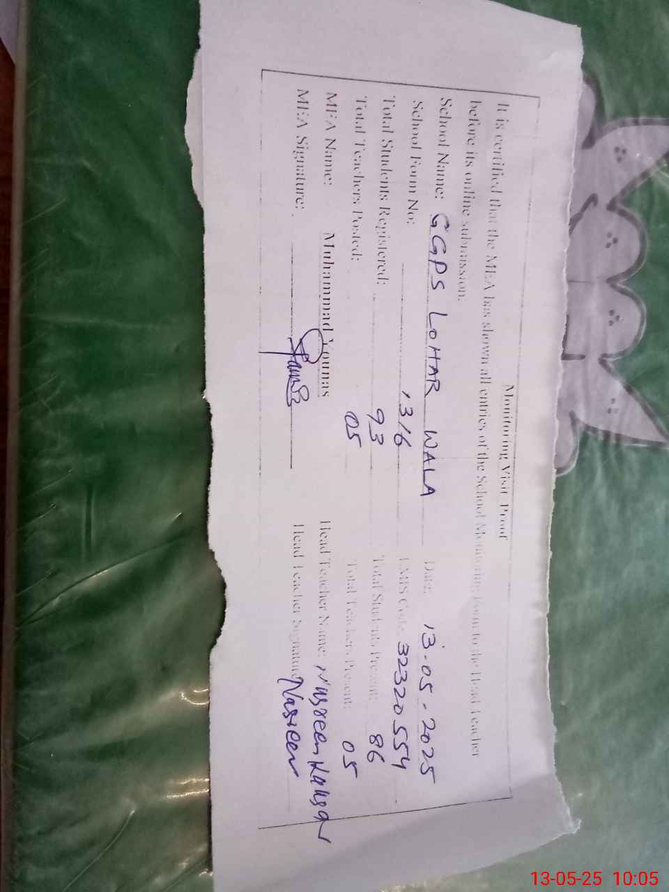| EMIS Code: 32320554 | Name of School: GGPS LOHAR WALA | |||