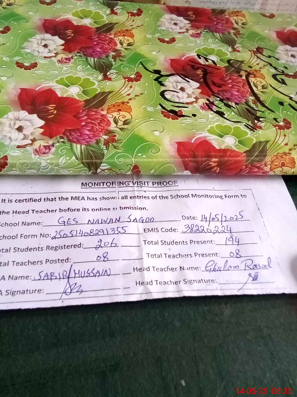 | Attendance Register | Head Teacher | MEA with School | Visit Proof |