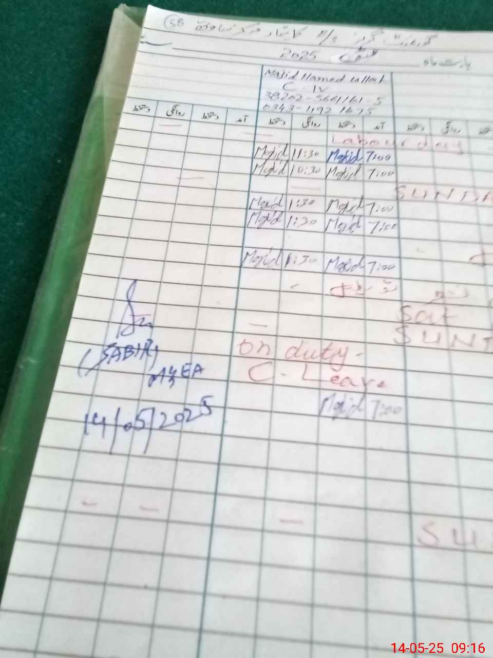 | CNIC | Full Name | Designation | R/C | Absence During Last Calender Month |