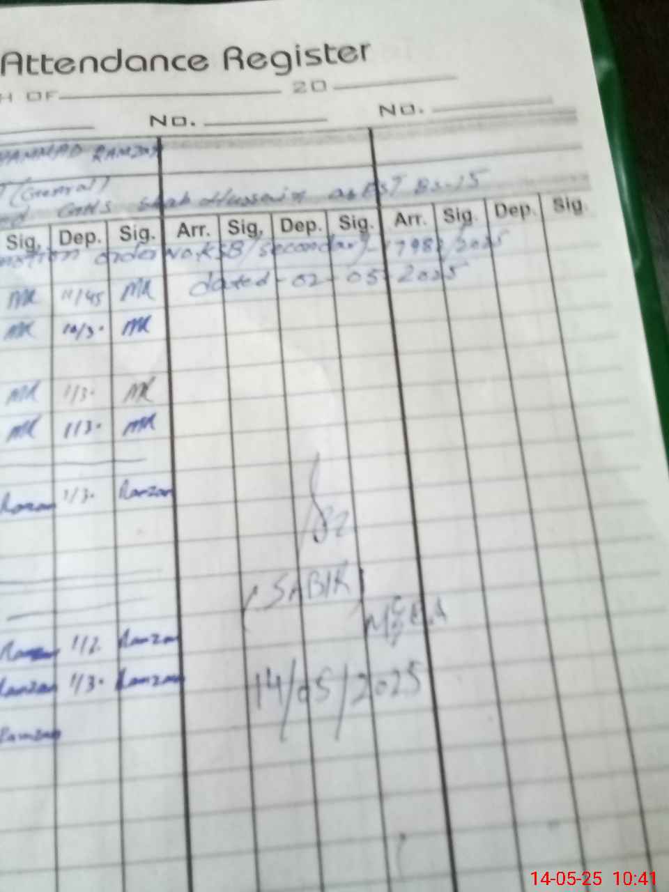 | CNIC | Full Name | Designation | R/C | Absence During Last Calender Month |