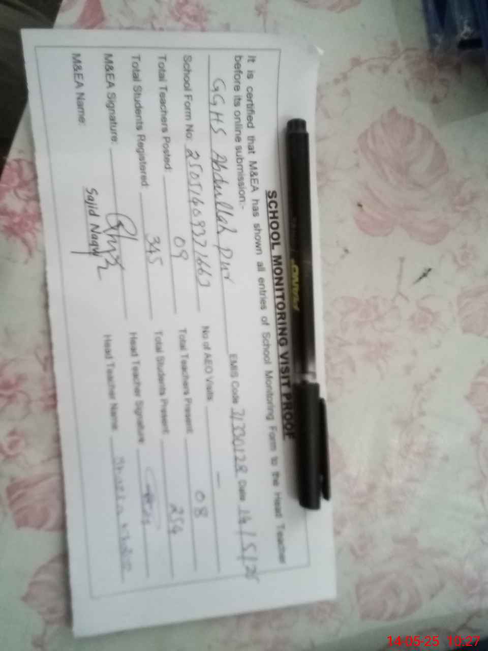 | EMIS Code: 31330128 | Name of School: GGHS ABDULLAH PUR | |||