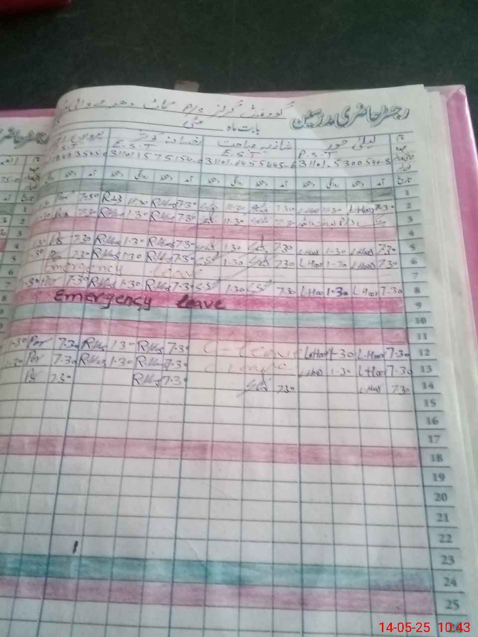 | CNIC | Full Name | Designation | R/C | Absence During Last Calender Month |
