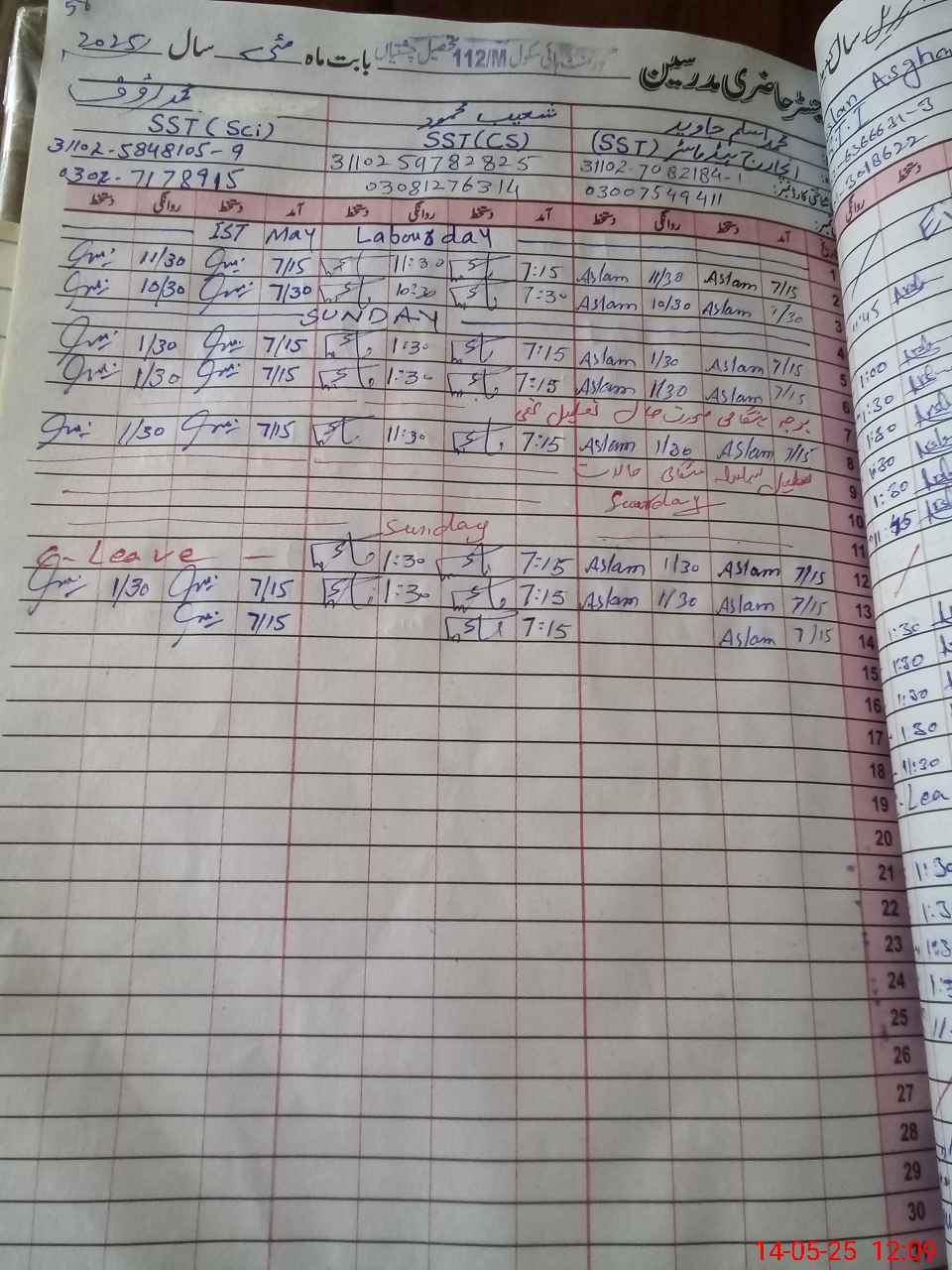 | CNIC | Full Name | Designation | R/C | Absence During Last Calender Month |