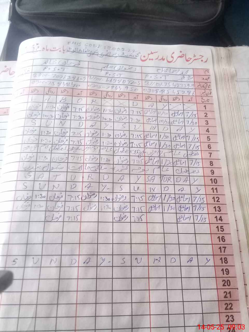 | Name: MU**** IS**** Designation: (School Headmaster's/Headmistress's) PST Phone/Cell Number: 03**** |