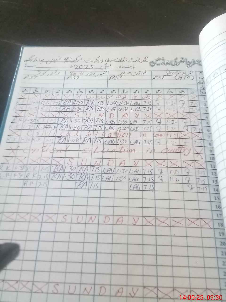 | CNIC | Full Name | Designation | R/C | Absence during last cal. month |