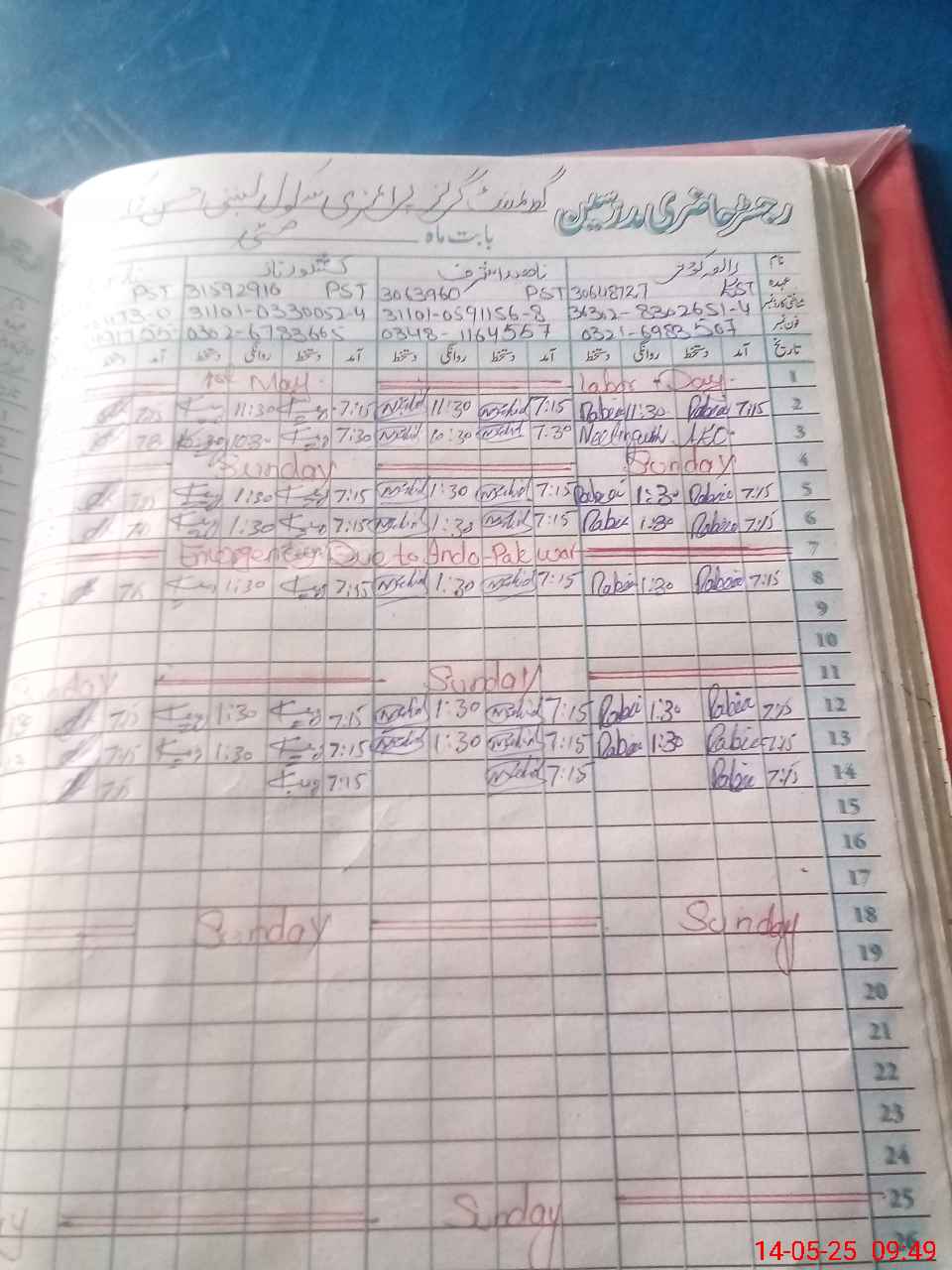 | CNIC | Full Name | Designation | R/C | Absence During Last Calender Month |