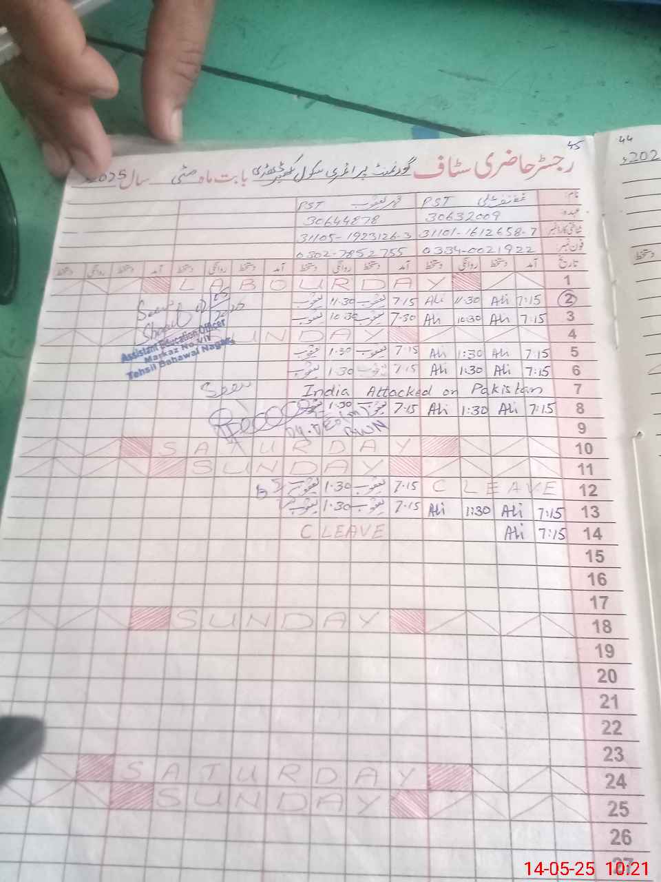 | Name: GH**** AL**** Designation: (School Headmaster's/Headmistress's) PST Phone/Cell Number: 03**** |