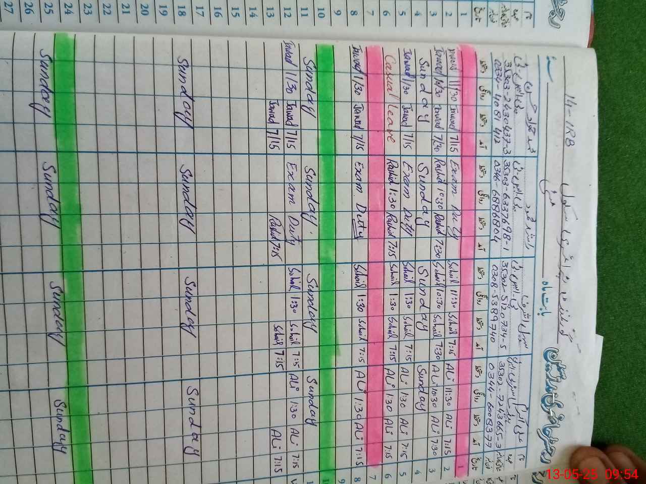 | CNIC | Full Name | Designation | R/C | Absence During Last Calender Month |