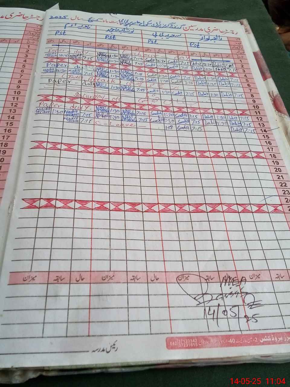 | CNIC | Full Name | Designation | R/C | Absence During Last Calender Month |