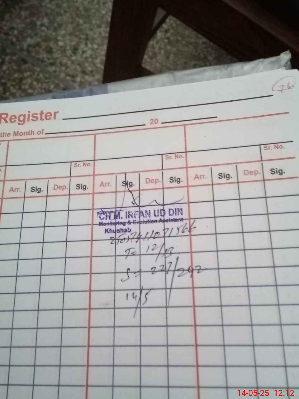 | Sr.No. | Visit Date | Designation | ||
