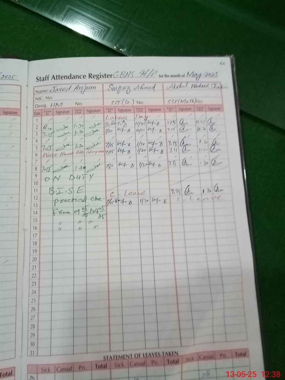 | 31**** | Ja**** An**** | HEADMASTER | Regular | 0 | 0 | 0 | 0 | 0 | 0 | 0 | 0 | 0 | Exam Duty |